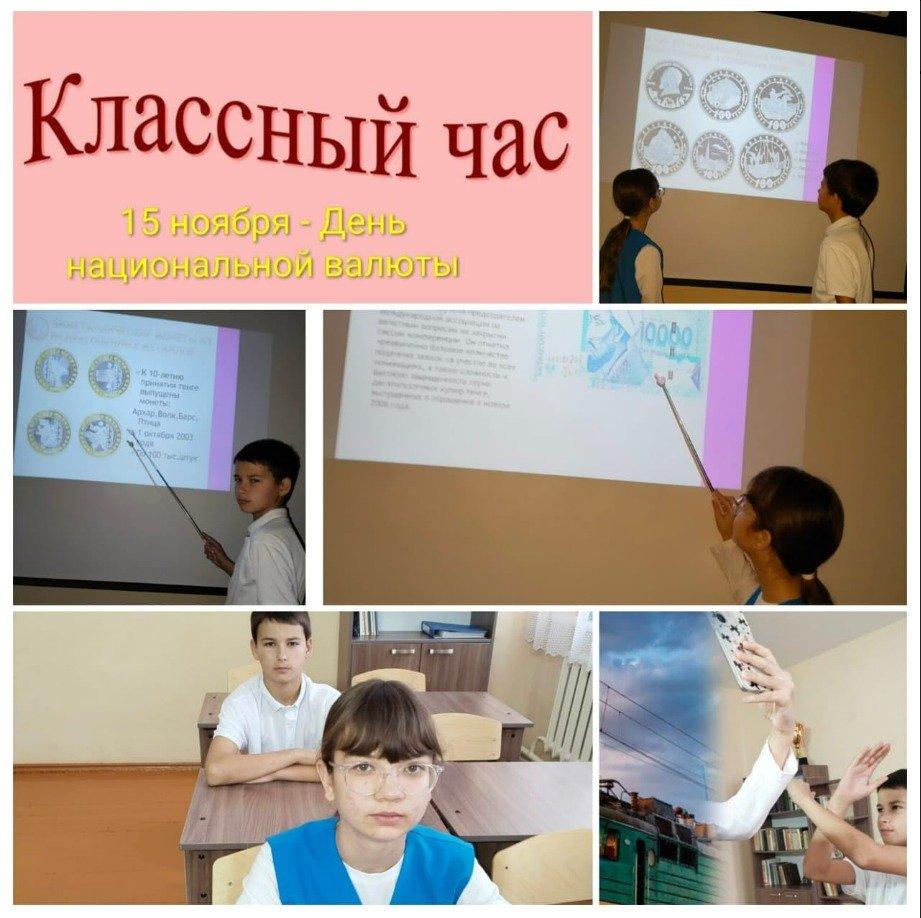 "Адал азамат" тәрбие бағдарламасы аясында құндылық-тәуелсіздік және патриотизм, 10-11 сынып сағатында "15 қараша – Ұлттық валюта күні.». Оның мақсаты оқушыларға ұлттық валюта - теңгенің рөлі мен орнын анықтауға көмектесу, қазақстандық патриотизм мен Отанға...