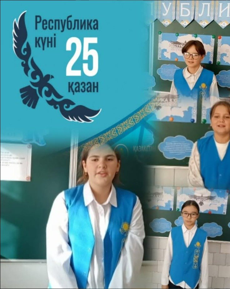 Республика күніне арналған іс-шаралар жоспары және "Адал азамат" Бірыңғай тәрбие бағдарламасы, "БАЛАЛАР КІТАПХАНАСЫ" және "ҰШҚЫР ОЙ АЛАҢЫ" жобасы шеңберінде құндылығы: "Тәуелсіздік және патриотизм", 6 сынып оқушылары арасында "Kazakhstan is my Motherland"...