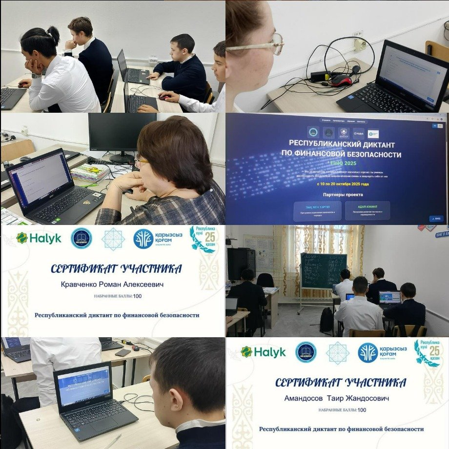 Мектеп педагогтары мен оқушылары Қаржы қауіпсіздігі жөніндегі республикалық диктантқа қатысты.