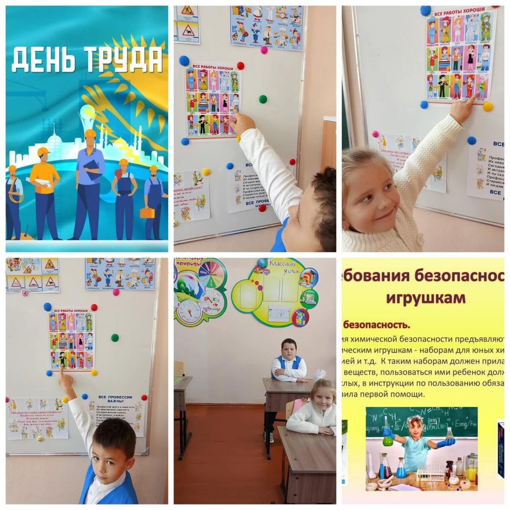"Адал азамат" тәрбие бағдарламасы аясында "Еңбегі адал - жас өрен" жобасы, құндылығы - еңбекқорлық және кәсіпқойлық, 1-сыныпта "еңбек-бата" сынып сағаты өткізілді. Мақсаты: балаларды әртүрлі мамандықтармен таныстыру