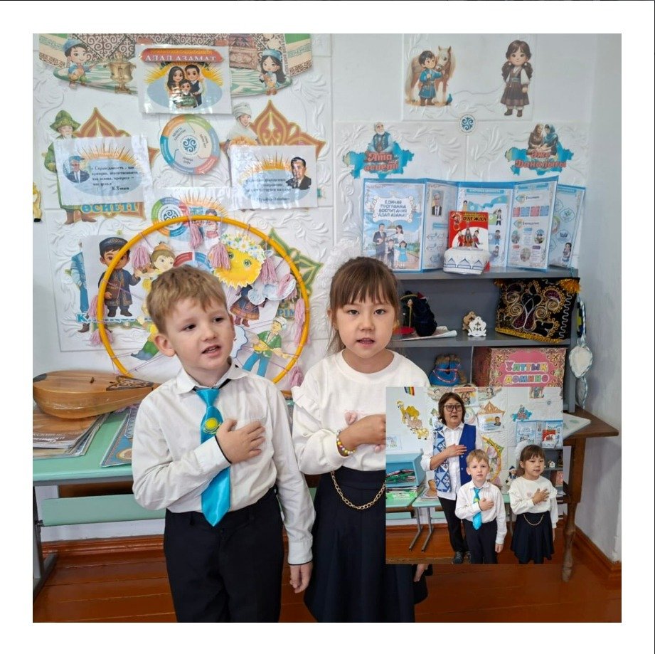 "Адал азамат" Бірыңғай тәрбие бағдарламасын, "Менің Қазақстаным" апталық іс-шараларын іске асыру шеңберінде "Қарлығаш" шағын орталығында жоғары және мектепалды топ тәрбиеленушілері Қазақстан Республикасының Мемлекеттік Әнұранын орындады .