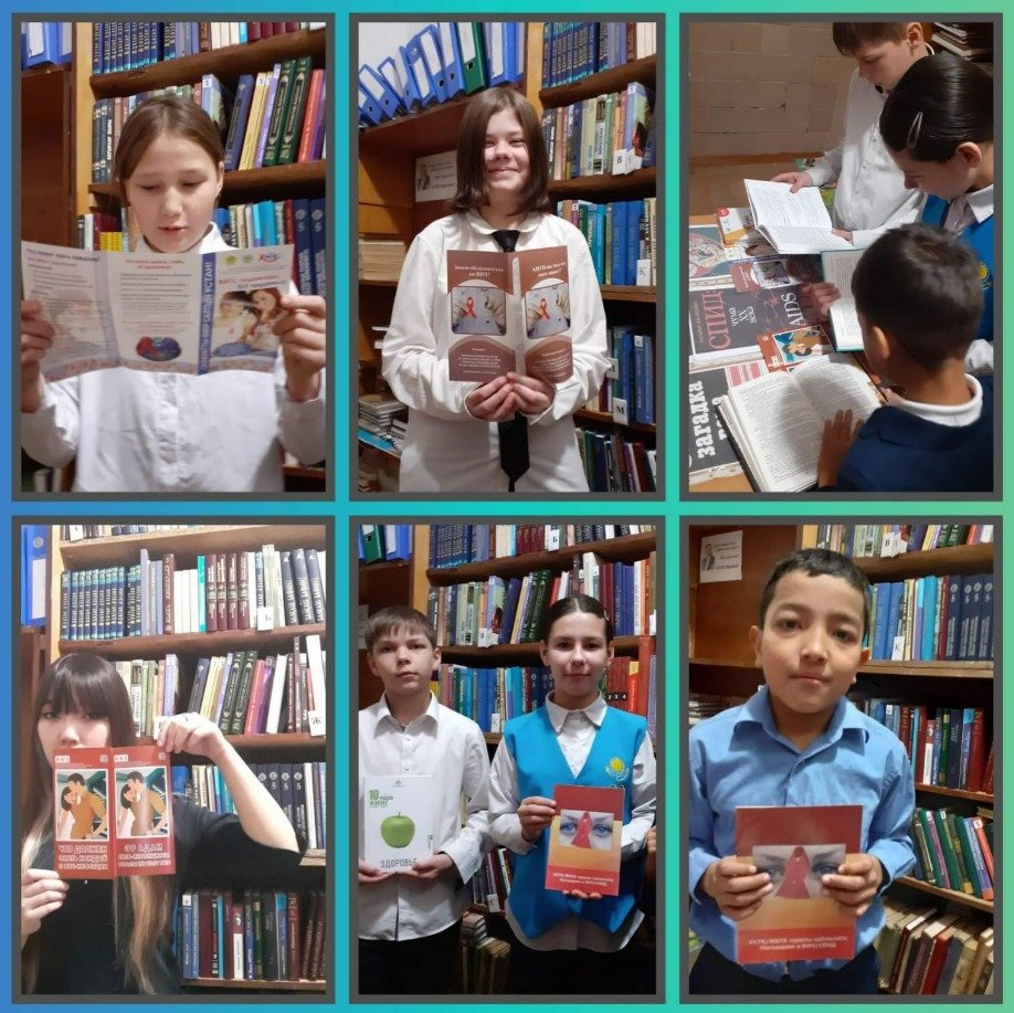 "Адал азамат" Бірыңғай тәрбие бағдарламасы, "Балалар кітапханасы" жобасы аясында мектеп кітапханасында "сенімді және бейқам адамдар ауруы: ЖҚТБ-ның алдын алу"денсаулық сағаты өткізілді.