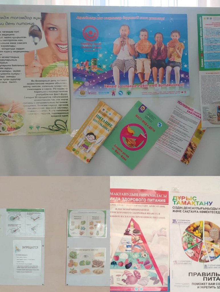 Мектебінің медицина қызметкерімен Панюта Г.Г. "Оқушының тамақтануы" тақырыбында ақпараттық, тақырыптық стендтер ресімдеді