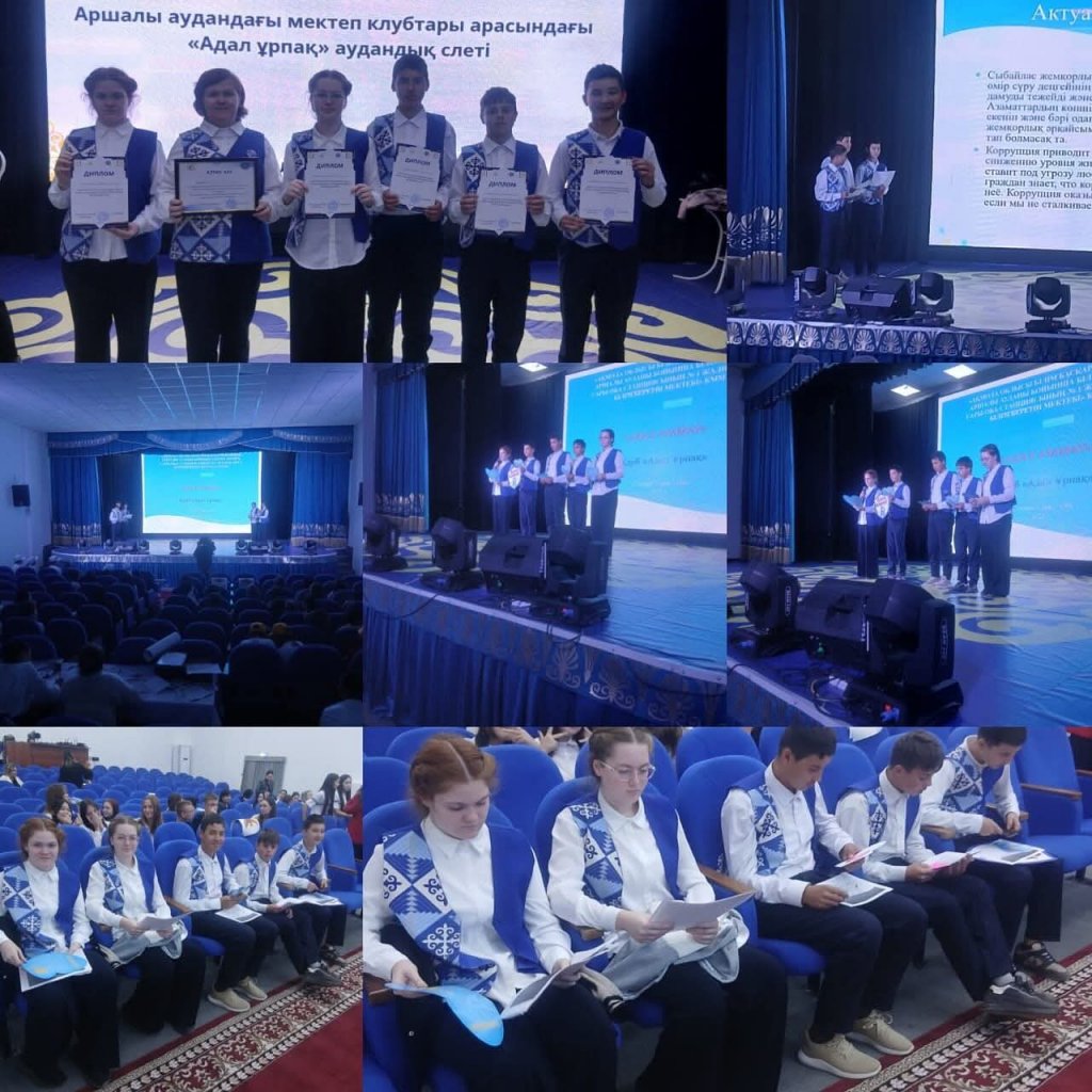 "Адал Ұрпақ" клубының қатысушылары мектеп клубтары арасында аудандық "Адал ұрпақ" байқауына қатысты. Конкурс жалпыадамзаттық құндылықтарды бекіту негізінде халықтың азаматтық ұстанымы мен жауапкершілігін тәрбиелеу мақсатында өткізілді.