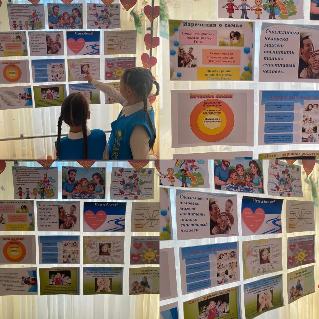 "Адал азамат" Бірыңғай тәрбие бағдарламасы аясында және отбасы күніне орай мектепте тақырыптық стенд рәсімделді. Отбасында қалыптасатын сүйіспеншілік, құрмет, ынтымақтастық және қамқорлық сияқты маңызды қасиеттерді нығайту мақсатында.