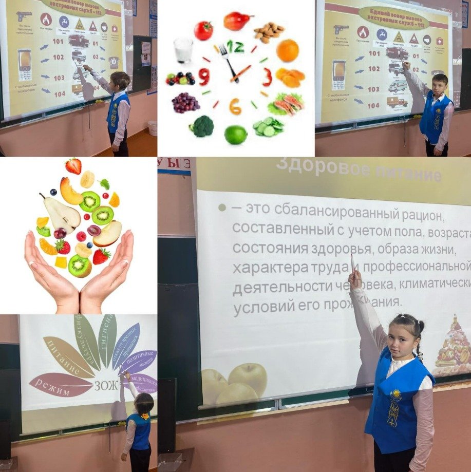 4-сыныпта Қауіпсіз және сапалы тамақтану дағдылары мен қағидаттарын қалыптастыру мақсатында "дұрыс тамақтану - денсаулық негізі"атты сынып сағаты өткізілді. Қауіпсіздік сабағы " төтенше жағдай кезінде төтенше жағдайларды шақыру сценарийі.”