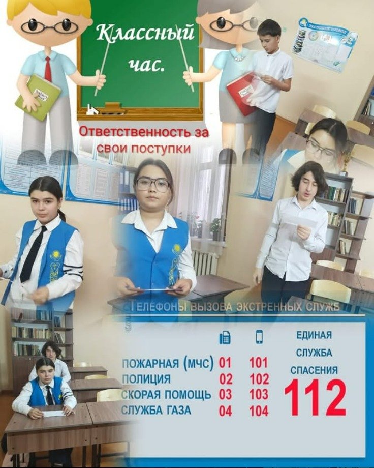 "Адал Азамат" тәрбие бағдарламасы аясында "Қамқор" жобасы күнделікті іс – шаралар" Үнемді тұт "құндылық-әділдік және жауапкершілік, 7 сынып оқушылары үшін"суды, тамақты, энергияны ұтымды пайдалану" сынып сағаты өткізілді. № 12 қауіпсіздік сабағы"бейтаныс адамдармен қарым-қатынас кезінде қауіпті сигналдар".
