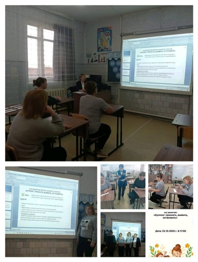 "ДОСБОЛЛИКЕ" білім беру ұйымында білім алушыларды қорқытудың (қорқытудың) алдын алу бағдарламасын іске асыру шеңберінде білім беру ұйымында қорқытудың (буллингтің) алдын алу және оған тиімді қарсы іс-қимыл жүйесін құру мақсатында. 5-9 сынып оқушыларының ата-аналарына "Буллинг: тану, анықтау, тоқтату"сабағы өткізілді. Мақсаты: жасөспірімдер ортасында қорқыту және оның алдын алу мүмкіндіктері туралы ата-аналардың идеяларын қалыптастыру. Тапсырмалар: