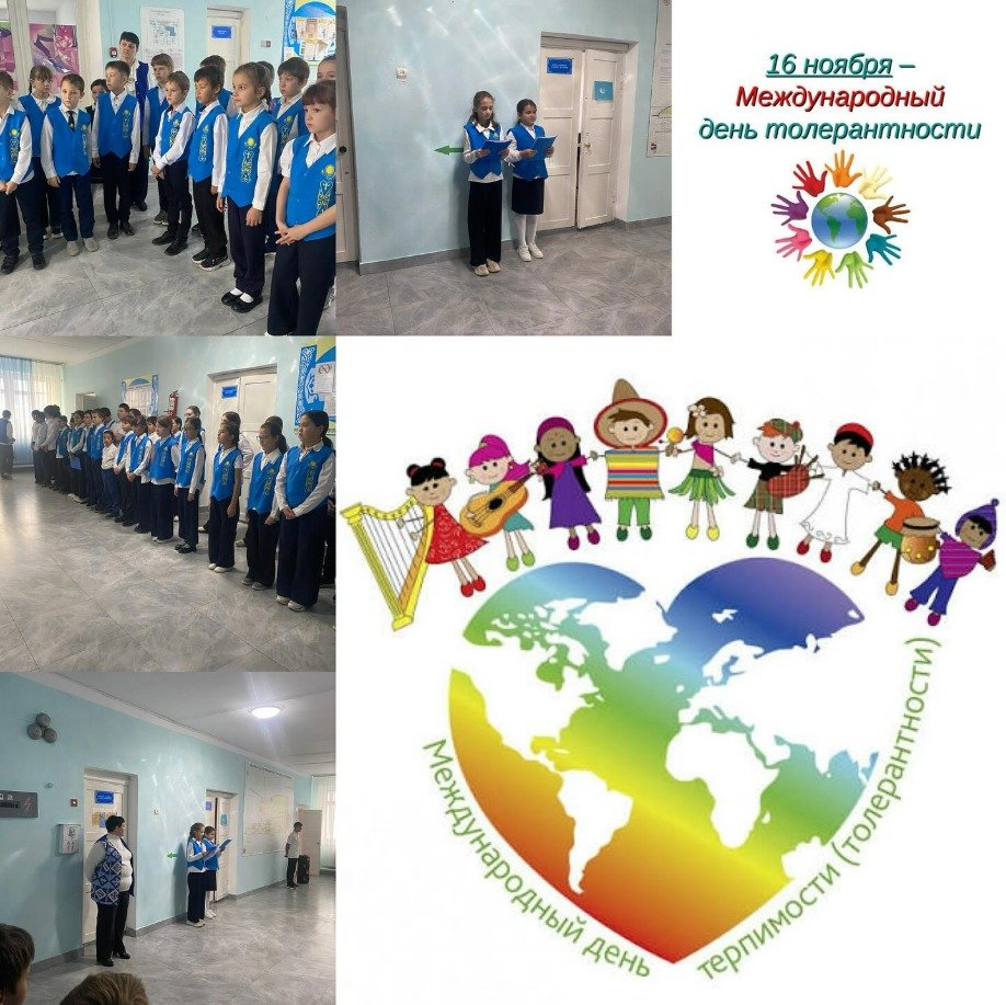 Қазақстан " жалпы мектеп жиынының басында ҚР Мемлекеттік Әнұранын орындады. Жалпы мектеп желісінің тақырыбы: "16 қараша-Халықаралық толеранттылық күні", құндылығы:"бірлік және ынтымақтастық". Мақсаты: толерантты дүниетанымды қалыптастыру, өз құқықтарын және басқа адамдардың құқықтарын құрметтеу;
